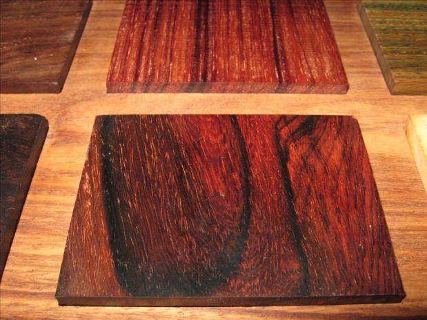 红酸枝木料色不匀称,深棕色花纹显著。生长发育轮不突出或略显著。散孔材或半环孔材,单管孔,极少数径列复管孔或稀管孔团,含有深棕色树脂胶、堆积物或侵填体。径向薄壁组织翼装、聚翼状带条状、环管教状及轮界状。